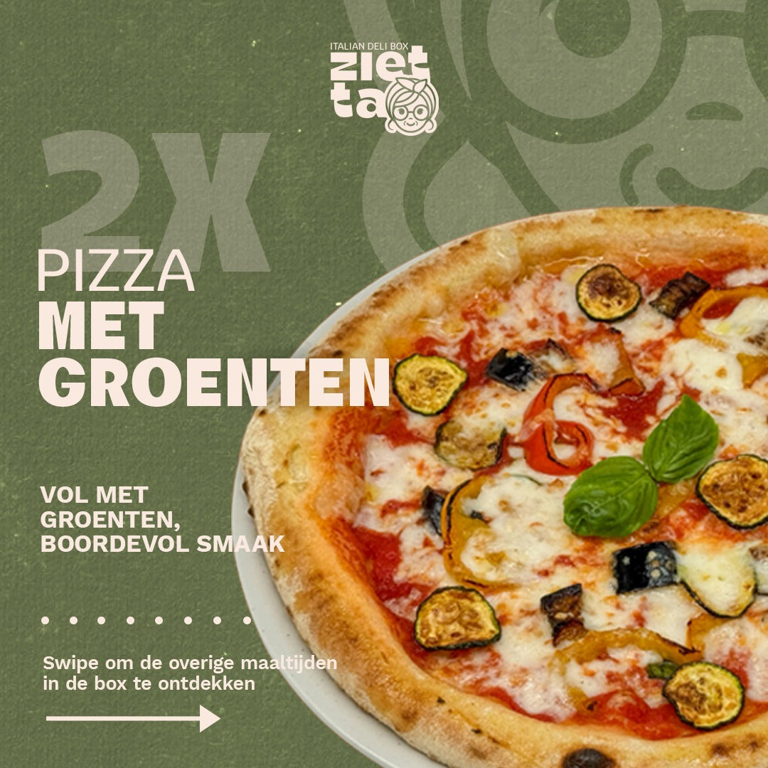 Indulge in the fresh, vibrant flavors of the Mediterranean with our Mediterraneo Bundle, featuring two delicious vegetarian pizzas.